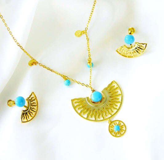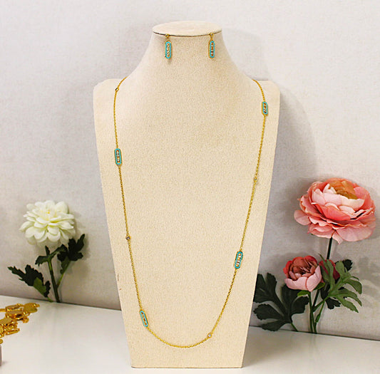 (Shakala) inställda örhängen och ett långt halsband