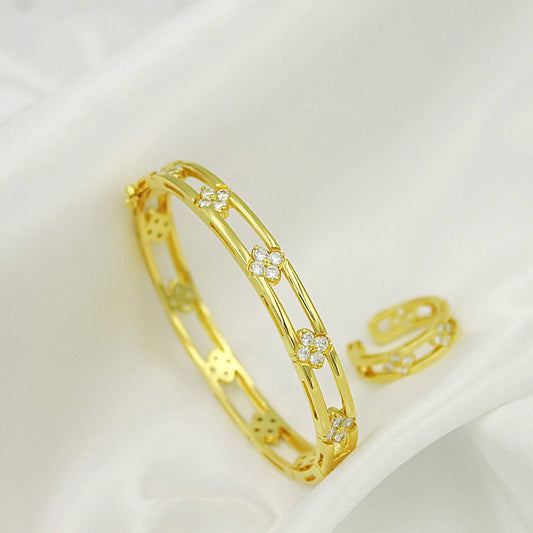 Armband och ring set med zirkonblommor💠
